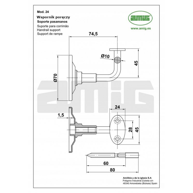 WSPORNIK PORĘCZY stalowy CZARNY uchwyt ścienny