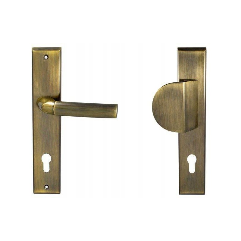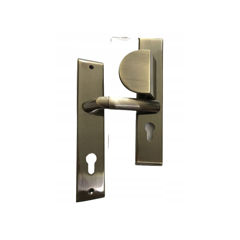 Klamka posiada z jednej strony gładki szyld taki jak pokazany na zdjęciach powyżej. Z drugiej natomiast posiada otwory na mocowanie. Gładki szyld mocuje się od zewnętrznej strony drzwi, dzięki czemu mamy w pewnym stopniu zabezpieczenie przed włamaniem gdyż nie ma dostępu do wkrętów a co za tym idzie-do wykręcenia klamki z drzwi.