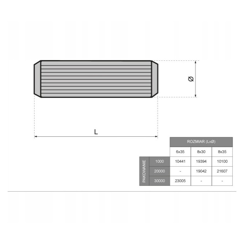 Kołki drewniane meblowe do połączeń 8x35mm 30szt