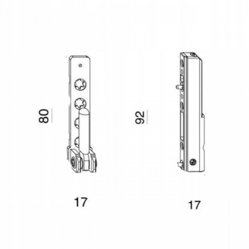 Regulacja wysokości: zawias można regulować w zakresie wysokości kluczem imbusowym 4 mm. Dla uzyskania lepszego komfortu śruba regulacyjna została zaprojektowana że klucz może być stosowany co 30°.