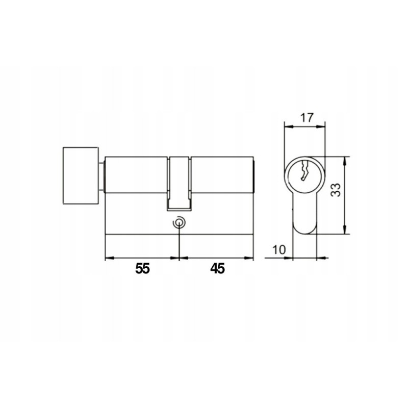 Wkładka bębenkowa z gałką w kolorze mosiądz, w zestawie 3 klucze i śruba do montażu.
