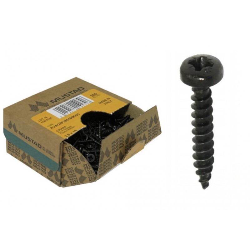 Wkręty czarne uniwersalne o wymiarze 4x25mm firmy MUSTAD