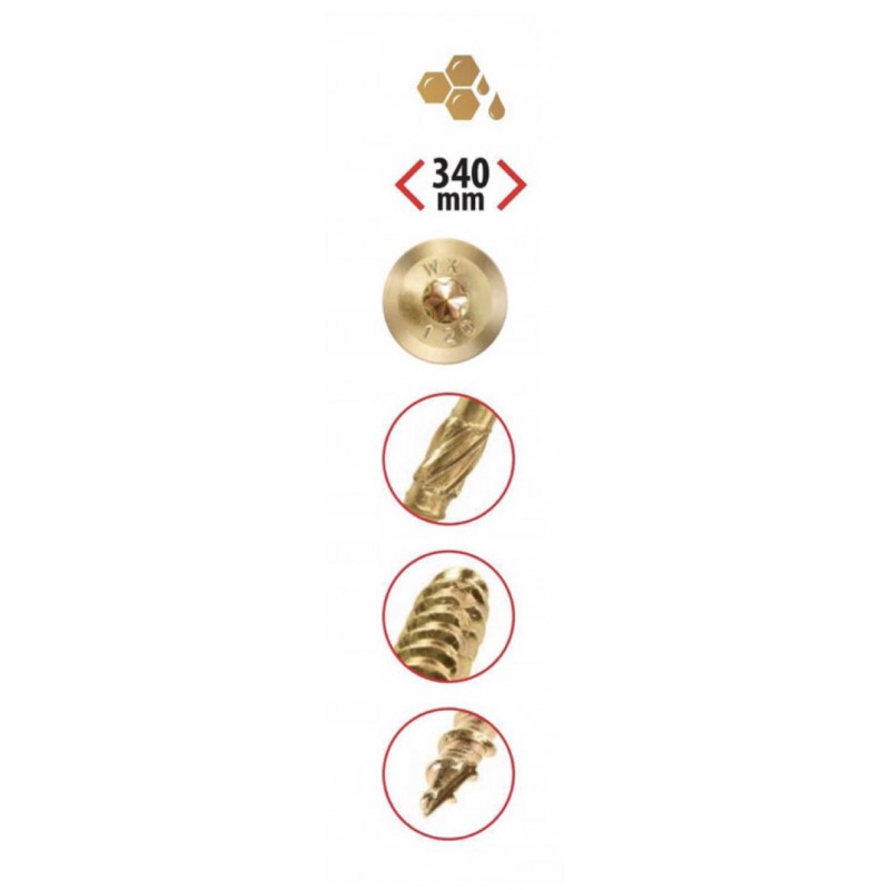 - Wkręt konstrukcyjny z łbem podkłądkowym i gniazdem TX do połączeń konstrukcyjnych elementów drewnianych m.in. litych, klejonych i płyt drewnopochodnych.